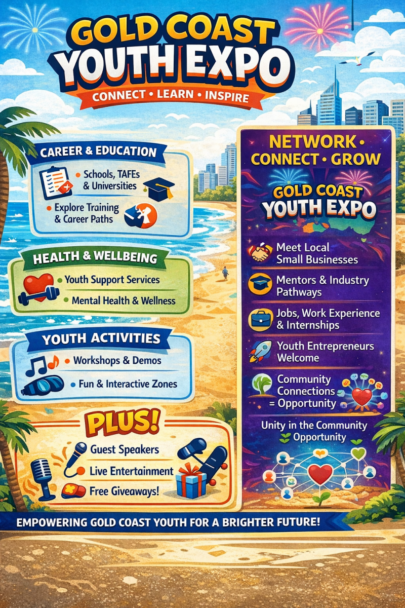 The Gold Coast Youth Expo is dedicated to connecting young people with opportunities for education, employment, and personal growth. Located at the Southport Community Centre, we aim to create an engaging and inspiring event that empowers the youth of the Gold Coast to achieve their full potential. Our approach is rooted in community, opportunity, and empowerment, ensuring that everything we do reflects our commitment to excellence.